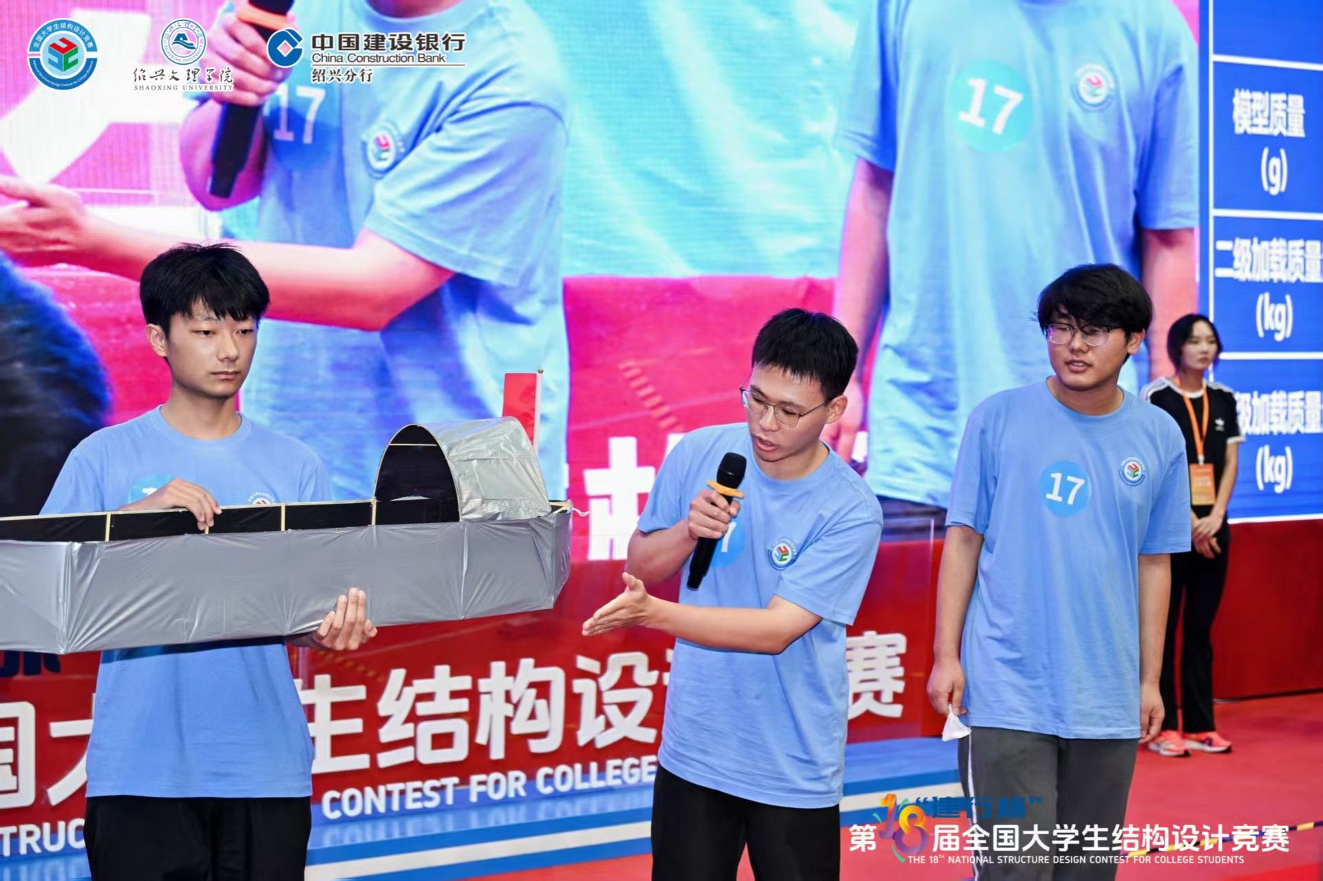 全国大学生结构设计竞赛是由教育部、财政部首次联合批准发文的全国性九大学科竞赛资助项目之一,也是土木工程领域级别最高、规模最大的大学生创新竞赛,被誉为大学生“土木学科竞赛皇冠上的璀璨明珠”。本次竞赛由全国大学生结构设计竞赛委员会主办,绍兴文理学院承办。本届竞赛赛题以乌篷船为原型,要求参赛队伍设计并制作一个乌篷船式结构模型,通过加载、造浪冲击等测试,检验结构模型的承载能力、稳定性、抗撞击性和防水性。
