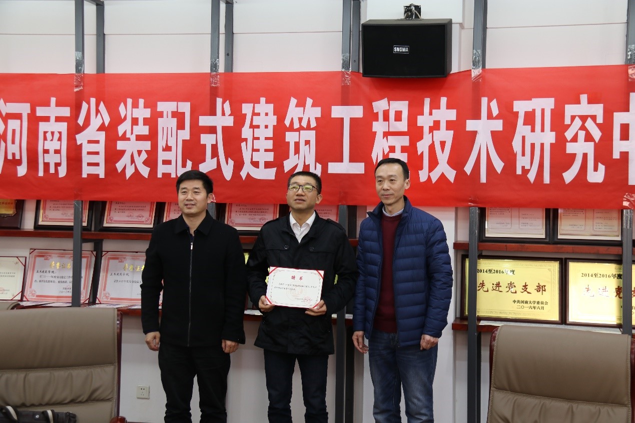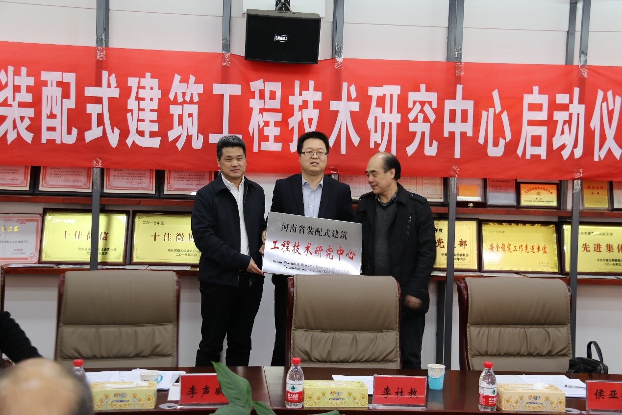 河南大学实验室与设备管理处李声威处长宣读了省里文件,并对依托河南大学、由新蒲建设集团有限公司、开封安利达绿色装配建筑有限公司和河南天元装备工程股份有限公司共建的河南省装配式建筑工程技术研究中心的正式启动建设表示祝贺,希望各家建设单位真诚合作,优势互补,将中心建设成为高水平的研发中心,为行业和中原经济区建设贡献力量。