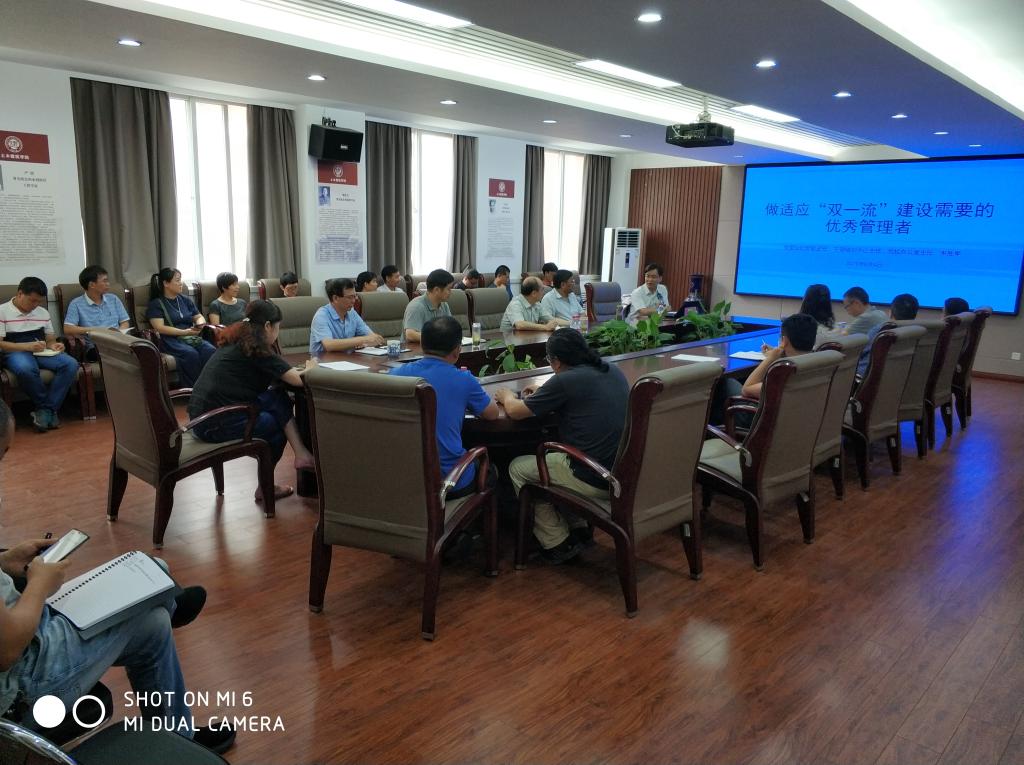 在专题报告环节,河南大学党委组织部副部长、干部培训中心主任韦胜军作了题为《做适应“双一流”建设需要的优秀管理者》的报告,他结合自身工作经历,根据目前学校双一流建设现状,从中央的要求,事业的需要,工作的方法三个方面向大家阐明了如何做一名优秀的管理者,特别是他指出的18条工作方法让与会人员受益匪浅。他指出一流大学要有一流的干部,打铁必须自身硬,要自觉激发内在动力,努力做到“清”、“慎”、“勤”,要时刻有危机意识、使命意识,昂扬向上的精神状态和担当精神。