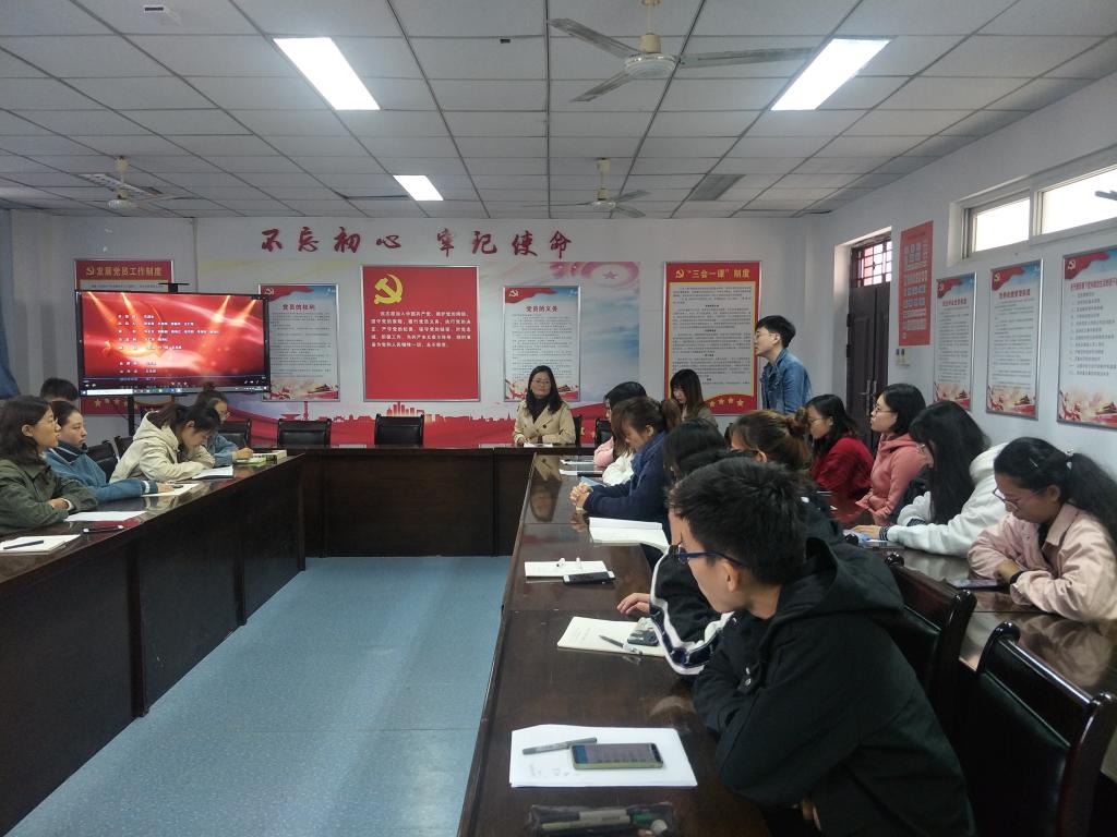 支部书记魏森杰带领大家学习习近平总书记在“不忘初心、牢记使命”主题教育工作会议上的重要讲话精神,她要求在座全体党员和团员要充分认识主题教育的重大意义和我们肩负的时代使命,把开展主题教育作为当前重要的政治任务,通过真学、真查、真改,牢固树立“四个意识”,坚定“四个自信”,坚决做到“两个维护”。