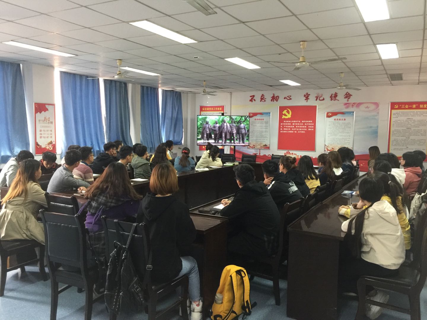与会人员一起观看主题教育纪录片《初心永恒》。
