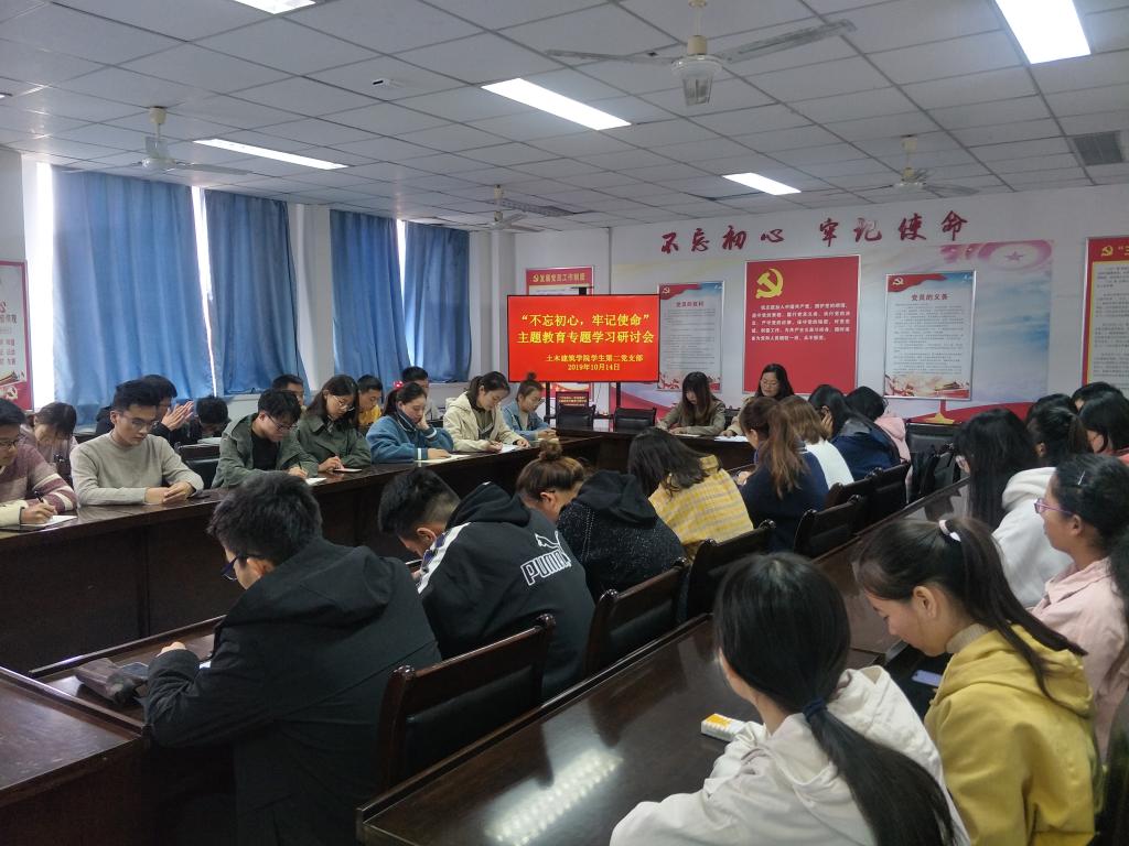 10月14日下午,我院本科生第二党支部在党建活动室602举行 “不忘初心、牢记使命”主题教育专题集中学习研讨会,支部书记、全体党员和18级城规班全体团员参加。
