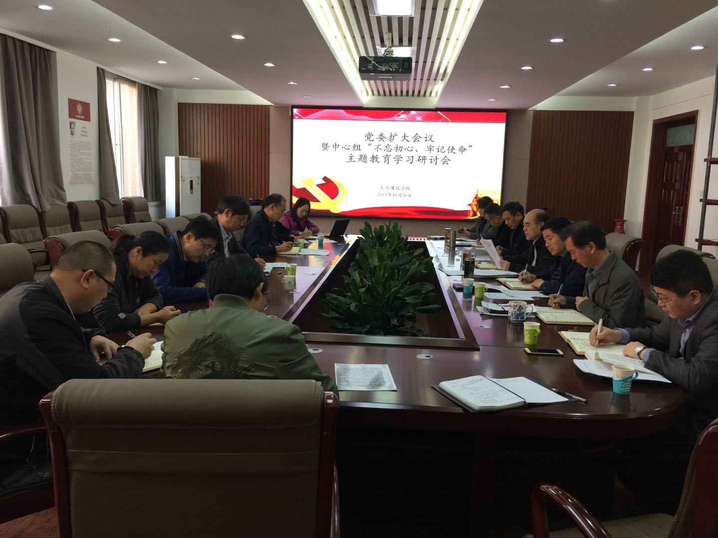 根据河南大学“不忘初心、牢记使命”主题教育周工作和我院中心组学习计划安排,10月30日上午,我院在院史馆204召开党委扩大会议暨中心组“不忘初心、牢记使命”主题教育学习研讨会,全体班子成员、教师和学生党支部书记参会,学校主题教育督导组成员郑铭勋、赵克强列席指导。学习研讨会由党委副书记党玉敬主持。