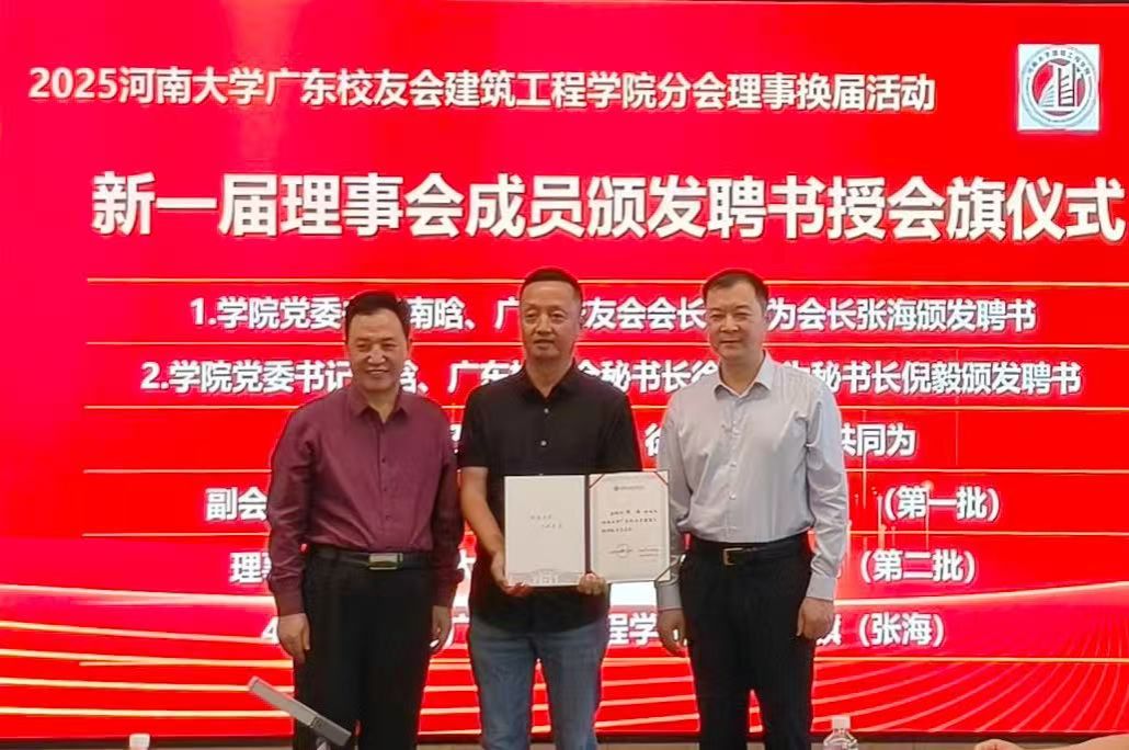 河南大学广东校友会会长毕德在致辞中指出,校友会始终践行“明德新民,止于至善”的校训精神,依托校友情谊联结、职业发展支持、产学研合作推进等具体举措,以河大建筑人的专业力量回馈社会、彰显责任担当,切实提升了河大校友在粤港澳大湾区建筑业的影响力。