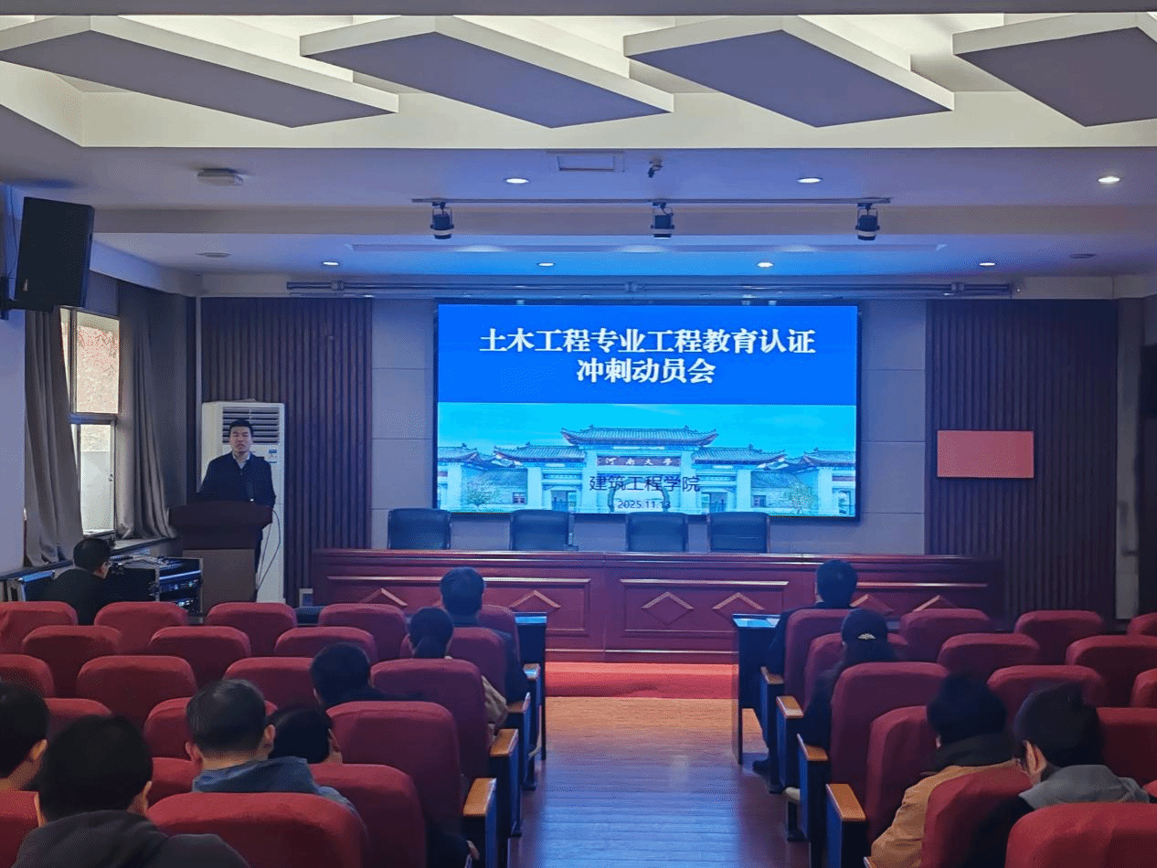 为压紧压实土木工程专业工程教育专业认证现场考查工作冲刺责任,细化任务分工、破解筹备难点,确保认证准备工作高效落地,11月13日下午14:30,我院在结构楼201 会议室召开了土木工程专业工程教育认证冲刺动员会。学院领导班子成员、土木工程专业全体教师、行政管理人员、实验室管理人员参会,会议由教学副院长边汉亮主持。