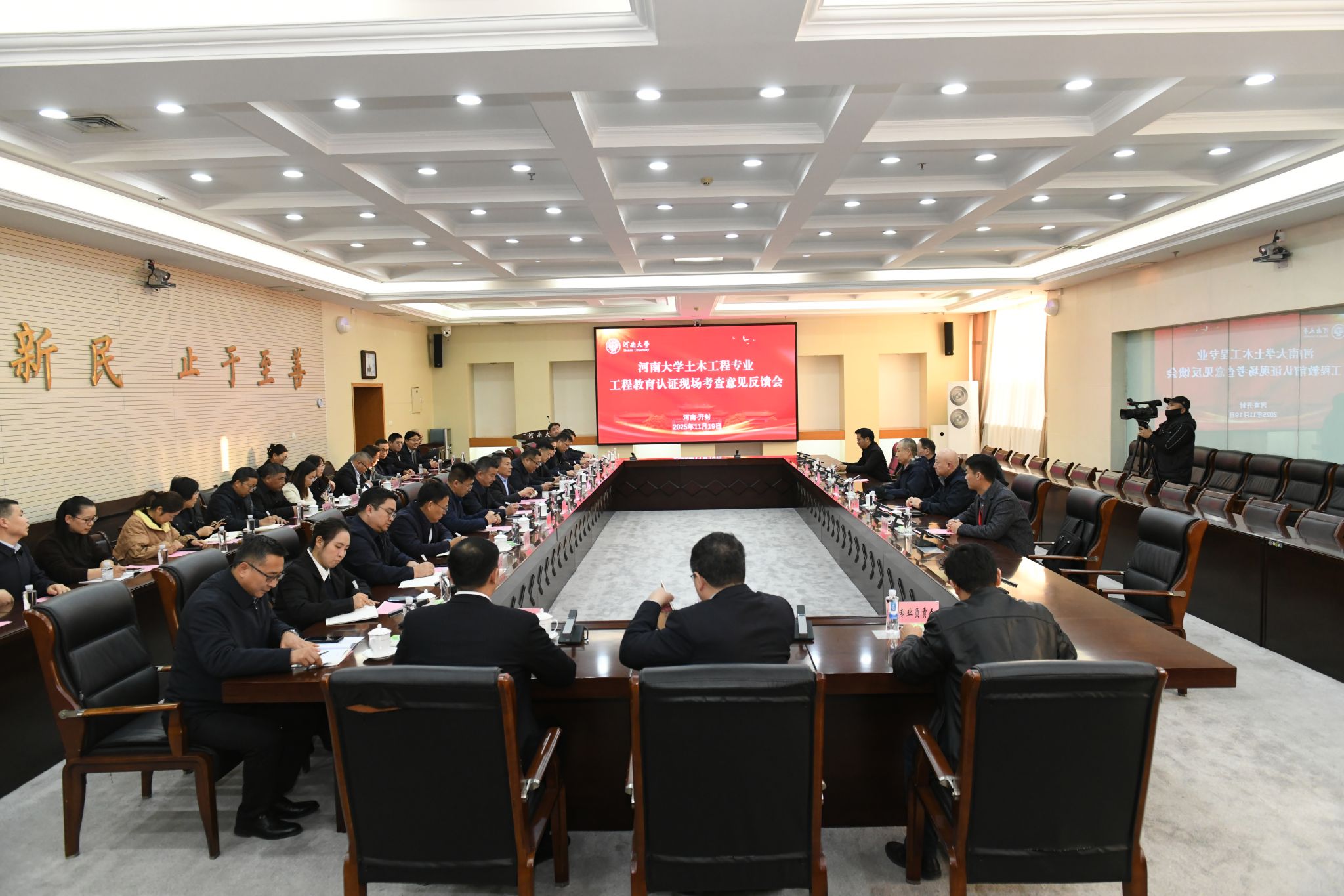 11月19日下午,专家反馈会在金明校区图书馆三楼会议室召开。专家组全体成员、校党委书记季波、学校相关职能部门负责人及相关专业师生代表参会,会议由河南大学副校长乔梁主持。