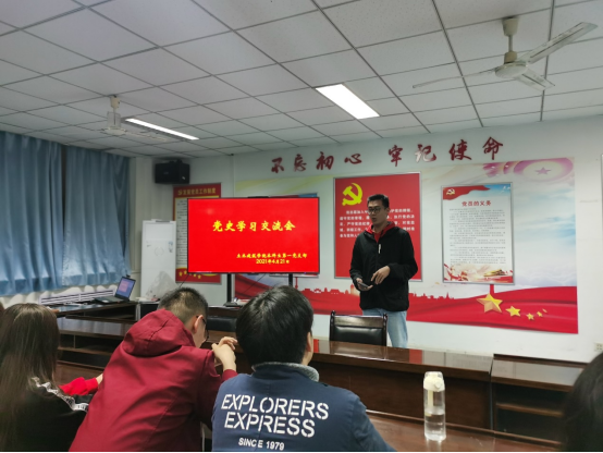 支部全体党员一起认真观看了关于中国共产党建党初期的历史纪录片。支部党员们感慨万千,为老一辈共产党人的大无畏精神所折服,他们踊跃发言,交流心得。学生党员朱秋硕在交流发言时说:“通过影片学习党史,五四运动,爆发于民族危难之际,是一场以先进青年知识分子为先锋、广大人民群众参加的彻底反帝反封建的伟大爱国革命运动,以磅礴之力鼓动了中国人民和中华民族实现民族复兴的志向和信心。”紧接着学生党员姚良雨说:“作为新时代的新青年,我们更应该学好党史牢记党的初心和使命,在实践中不断提高自己,更好的回报祖国和社会。”随后,10余名党员向大家讲述了他们对于党史学习的理解和认识,结合自身所感所想发表了自己的心得。他们围绕党的光辉历史、身边的优秀党员、抗疫英雄事迹等几个方面,在支部内引起了热烈的讨论。