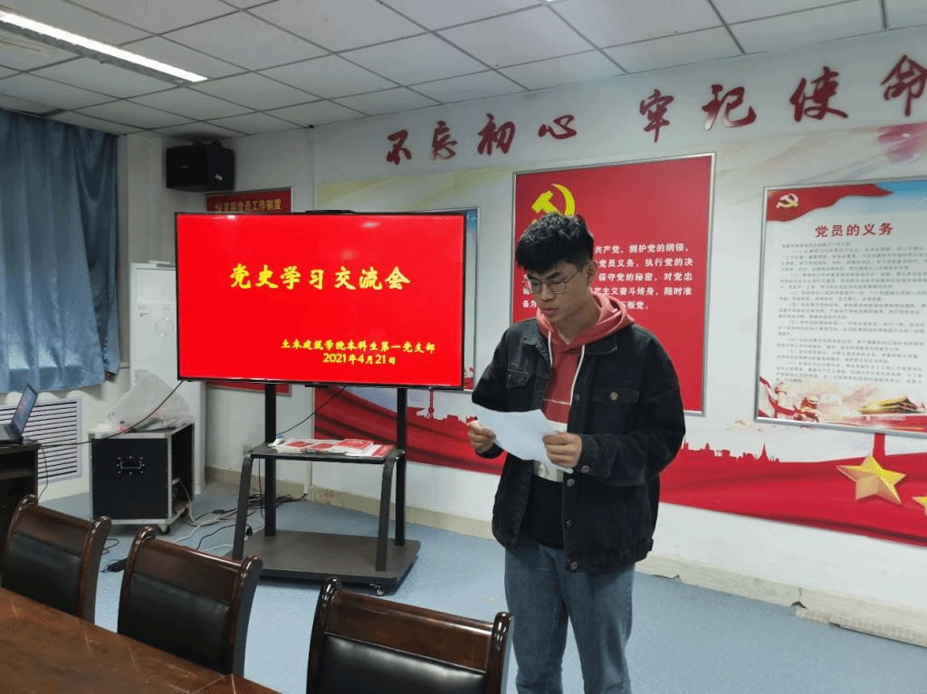 为更好的开展党史学习,4月22日下午,本科生第一党支部在602党员活动室开展了党史学习交流会。知史明鉴,在深学真悟中提高思想认识,汲取精神动力。土木建筑学院党委牢牢把握立德树人根本任务,扎实开展党史学习教育,深化综合改革,通过组织引领学深“党史”,师生先锋共讲“党史”,开拓阵地传播“党史”,筑牢育人阵地,凝聚育人合力,凸显育人成效,构筑新格局。本科生第一党支部强化组织引领党史学习教育,以“党史”滋养党员初心,牢记个人使命,营造支部书记领着学,学生党员抢着学”的学习氛围。 将党史学习教育融入平时生活,引导全体教师将“党史”与学院专业课程相融合,从课程思政的要义传承红色基因、再续红色血脉,激励学生担当时代新人的使命与责任。