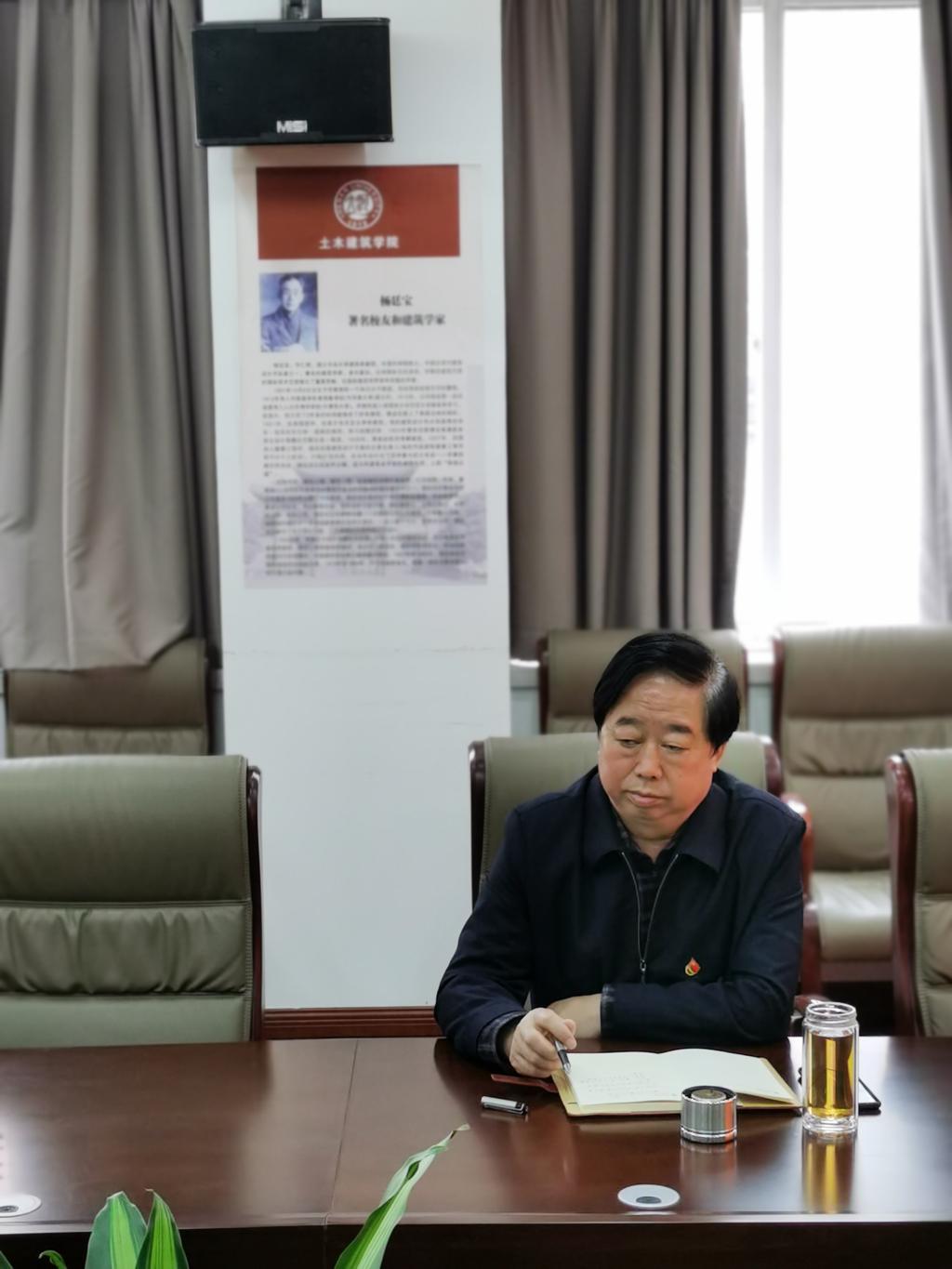 土木建筑学院党委书记李社教汇报了目前学院党史学习教育的基本情况,表示要以习近平总书记重要指示精神为遵循,确保党史学习教育的具体安排落实到位,切实做到学史明理、学史增信、学史崇德、学史力行,通过党史学习教育提升学院凝聚力。