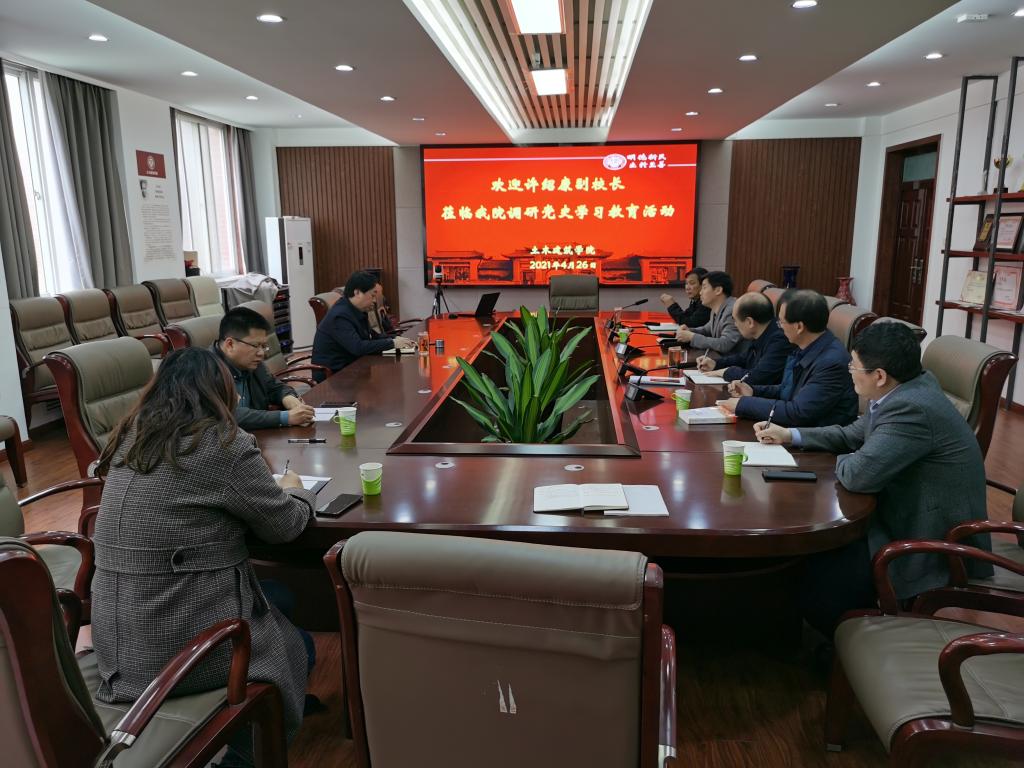 4月26日上午,校党委常委、副校长许绍康到我院调研指导党史学习教育工作,学院全体班子成员及党办院办主任参加。