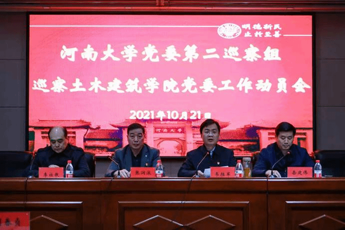 根据学校党委统一部署,10月21日下午,校党委第二巡察组召开巡察土木建筑学院党委工作动员会。会前,第二巡察组组长韦胜军主持召开与土木建筑学院党委书记李社教,党委副书记、院长岳建伟的见面沟通会,通报了巡察任务和工作安排,党委巡察工作领导小组成员、校纪委副书记张润泳参加。在之后的动员会上,张润泳宣读了《关于中共河南大学第十一届委员会第三轮巡察组长、副组长授权任职及任务分工的通知》,并作动员讲话,就巡察工作提出了指导意见和明确要求,韦胜军通报了本次巡察任务、工作安排和具体要求,李社教作表态发言,岳建伟主持会议。第二巡察组全体成员、学院全体教职员工、退休教职工代表及学生代表参加了动员会。