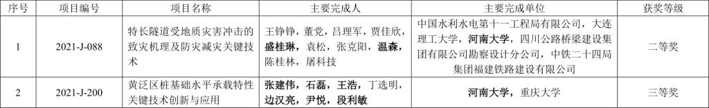 近年来学院高度重视标志性科技成果的奖励申报工作,全院科技工作者坚持面向土木工程科技前沿、面向国家重大战略需求,努力自觉履行科技工作的使命和担当,不断取得创新成果,学院连续三年获批河南省科学技术进步奖,为推动学校“双一流”建设和学院高质量发展起到积极的促进作用。