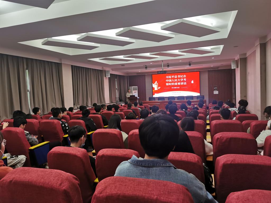 4月25日上午,中共中央总书记、国家主席、中央军委主席习近平来到中国人民大学考察调研,并发表重要讲话。4月28号下午,学院党委组织全体本科生党员在学术报告厅集中学习习近平总书记在中国人民大学考察调研时的重要讲话,并开展了学习研讨交流,会议由党委办公室主任魏森杰老师主持。