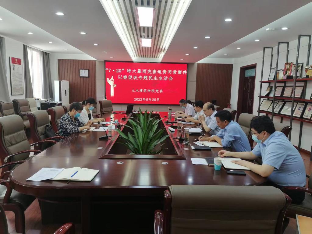 5月25日上午,土木建筑学院在院史馆204召开郑州“7.20”特大暴雨灾害追责问责案件以案促改专题民主生活会,校党委巡察工作办公室正处级巡察专员胡春贞、纪委监察专员办公室副处级纪检检察员孔瑞婷列席指导,学院全体班子成员参加,会议由学院党委书记李社教主持。