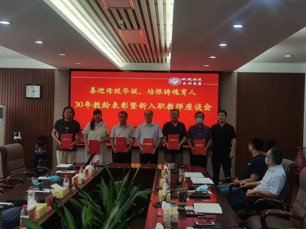 喜迎母校华诞,培根铸魂育人。9月8日下午,在第38个教师节来临之际,土木建筑学院举办30年教龄表彰暨新入职教师座谈会,学院领导班子、受表彰教师和2020年以来新入职教师参与了本次活动。座谈会由学院党委副书记赵艳忠主持。