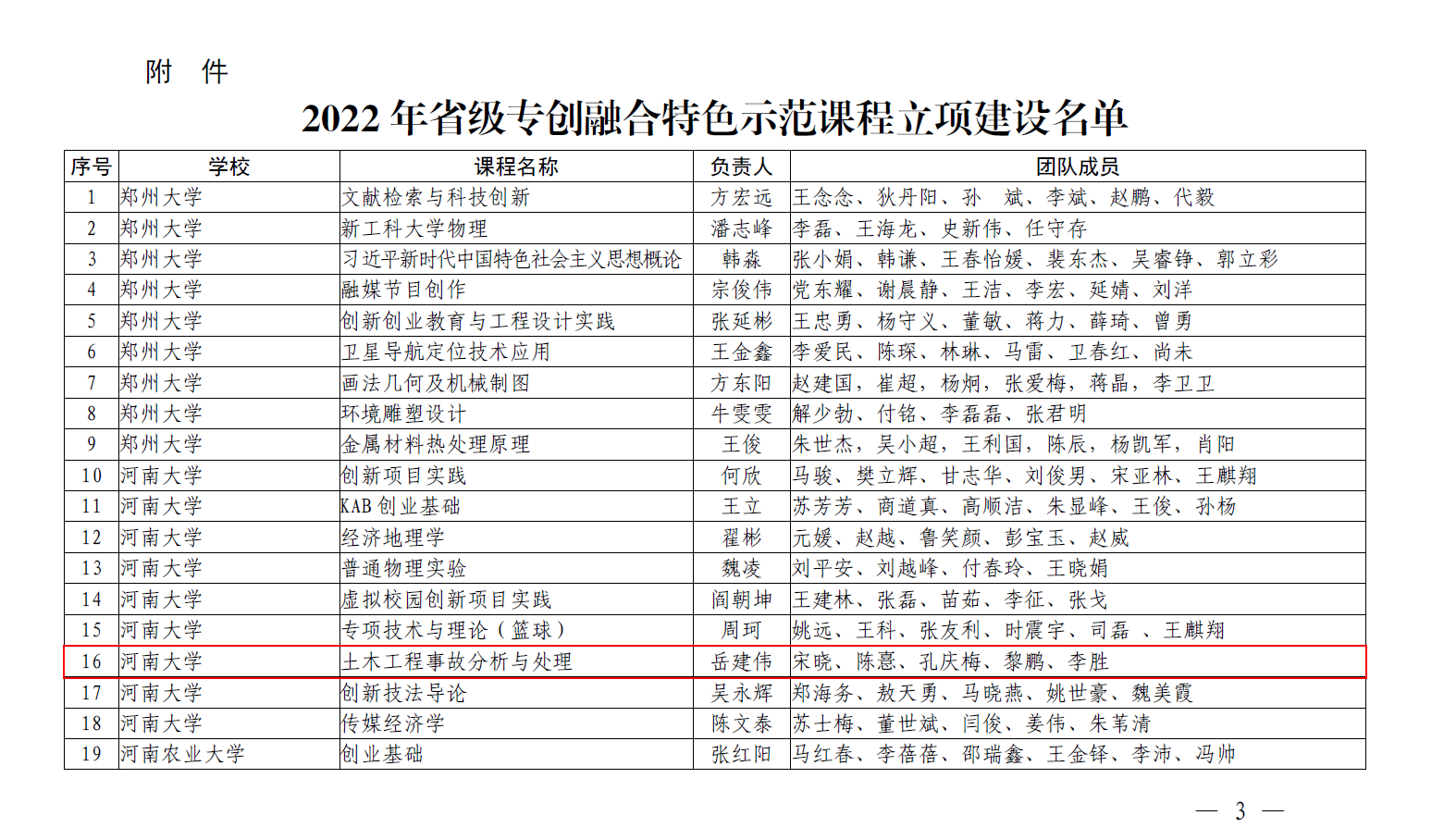 近日,河南省教育厅下发了《关于公布2022年专创融合特色示范课程立项建设名单的通知》(教高〔2023〕72号)。根据河南省教育厅办公室《关于开展河南省首批“专创融合”特色示范课程立项建设工作的通知》(教办高〔2022〕398号)要求,经高校申报、会议评审,在河南省首批“专创融合”特色示范课程立项建设工作中,我校共获批专创融合特色示范课程9项;我院岳建伟教授主持申报的示范课程《土木工程事故分析与处理》成功获批。