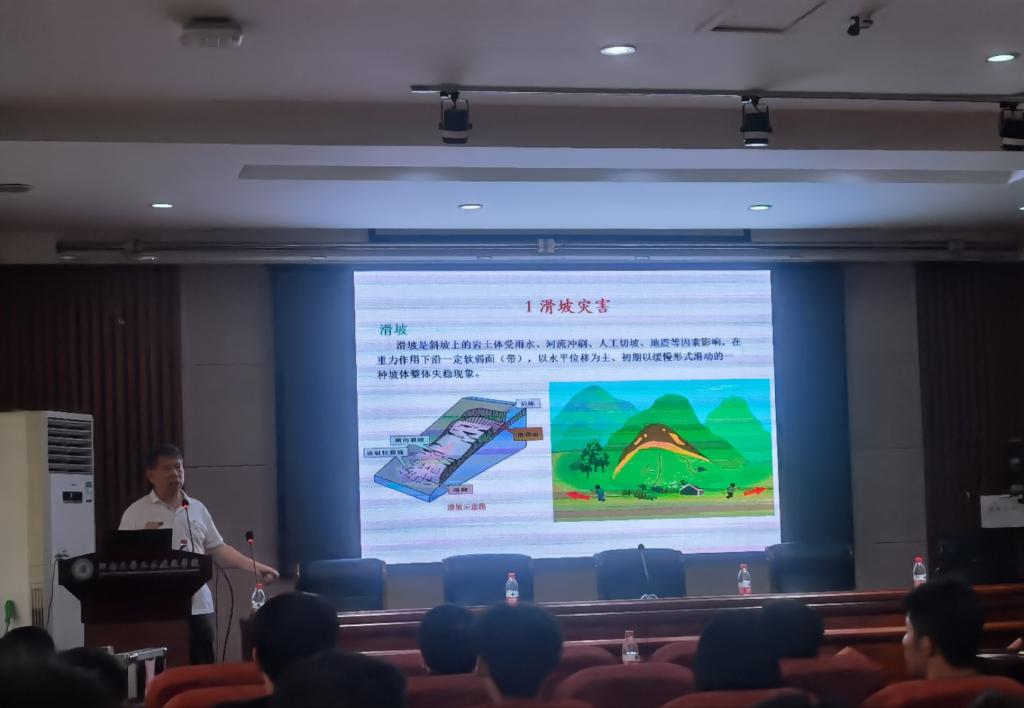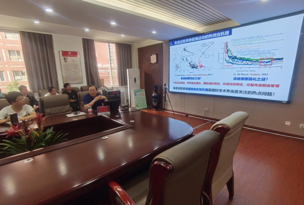 何思明研究员报告的题目为《地质灾害动力学:机制、模型与预测》。何思明研究员分别从高速远程滑坡超强运动机理、物理模型与模拟;链式动力学机制、物理模型与数值模拟平台;山区小流域山洪泥石流灾害精细化数值预报;基于地震信号的地质灾害监测与参数反演;基于声学系统的小流域输沙监测与反演;地球物理信号在防灾减灾领域中的应用前景,六个方面详细介绍了地质灾害动力学的发展前言。报告结束后,何思明研究员就地质灾害研究的发展趋势与我院师生进行了深入的交流。