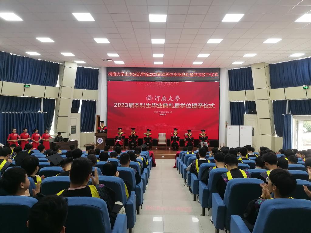 多年师生情,今昔亦别离。满堂祝福语,聊赠学子行。6月5日上午,河南大学土木建筑学院2023届本科生毕业典礼暨学位授予仪式在金明校区锥形报告厅隆重举行,出席仪式的有土木建筑学院党委书记南晗,学院院长张建伟,副院长张大伟、原华、李锋,副处级组织员直长运,河南省特聘教授王哲,河南大学特聘教授李合群等部分教师代表及各年级辅导员。典礼由学院党委副书记赵艳忠主持。