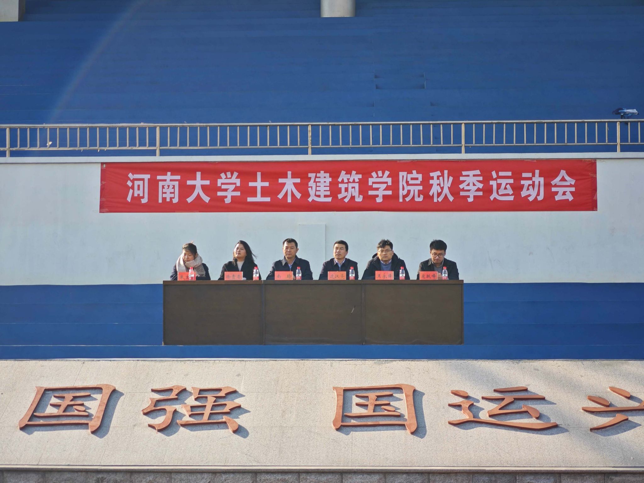为营造积极良好的运动氛围,提升同学们的身体素质,11月18日下午,土木建筑学院秋季运动会在河南大学金明校区志义体育场如期举行。土木建筑学院党委书记南晗、副院长边汉亮、行政办公室主任王永锋、团委书记徐贵香、研究生辅导员朱文茜、本科生辅导员寇跃峰出席本次开幕式。开幕式由龙腾、张子雯两位同学主持。