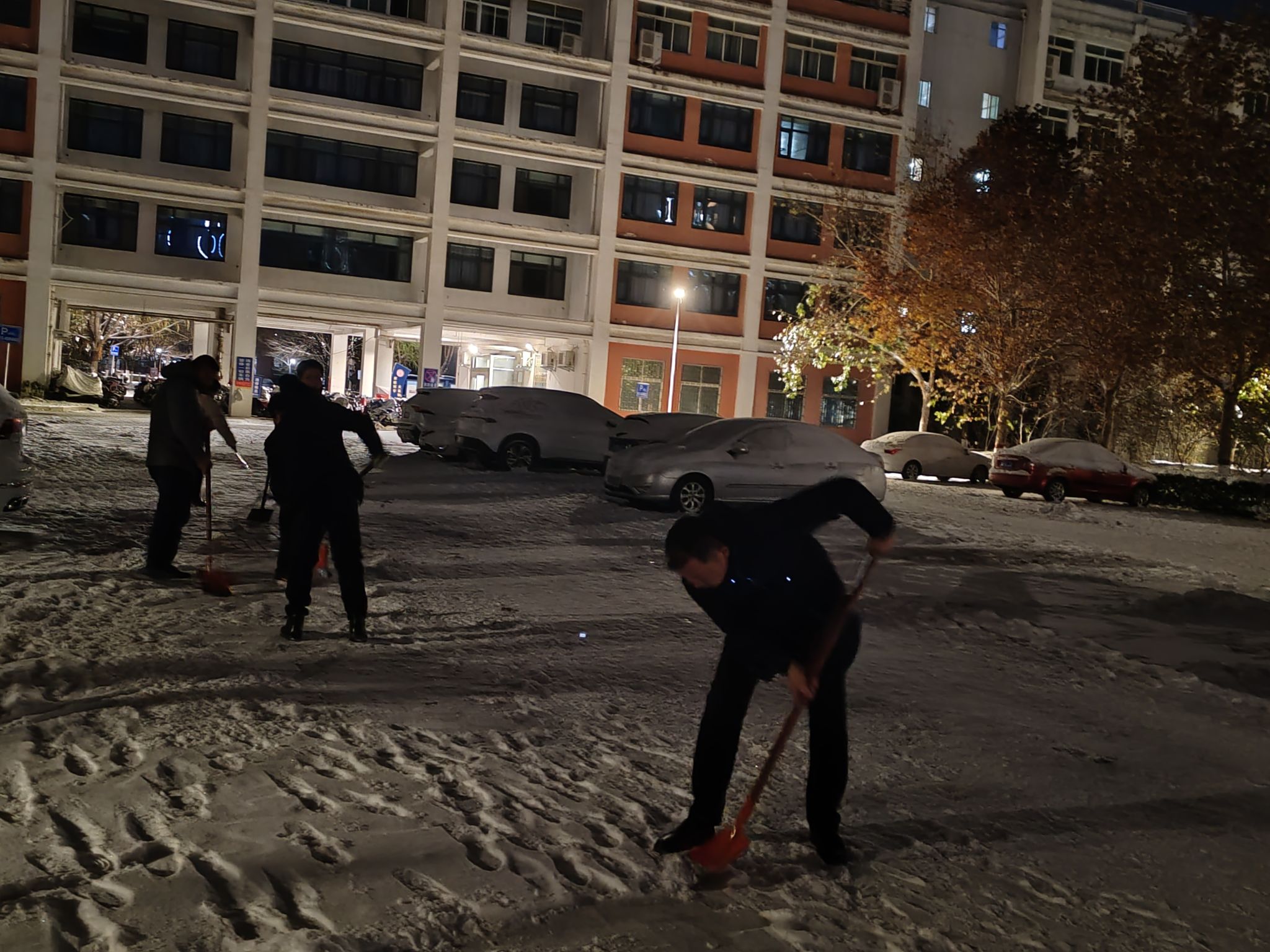 大雪来临之前,学院紧急制定低温雨雪冰冻灾害防范应急预案,做好家庭困难学生、离退休教师的防寒保暖工作,开展安全隐患排查,班子成员仔细检查院内水电线路确保正常供应水电,检查教室、实验室保证正常供暖。同时购买化雪盐,用于主干道防冻融雪。还在各条通道上下台阶等重点地段设立防滑安全垫,严防积雪结冰造成人员摔伤等意外发生。