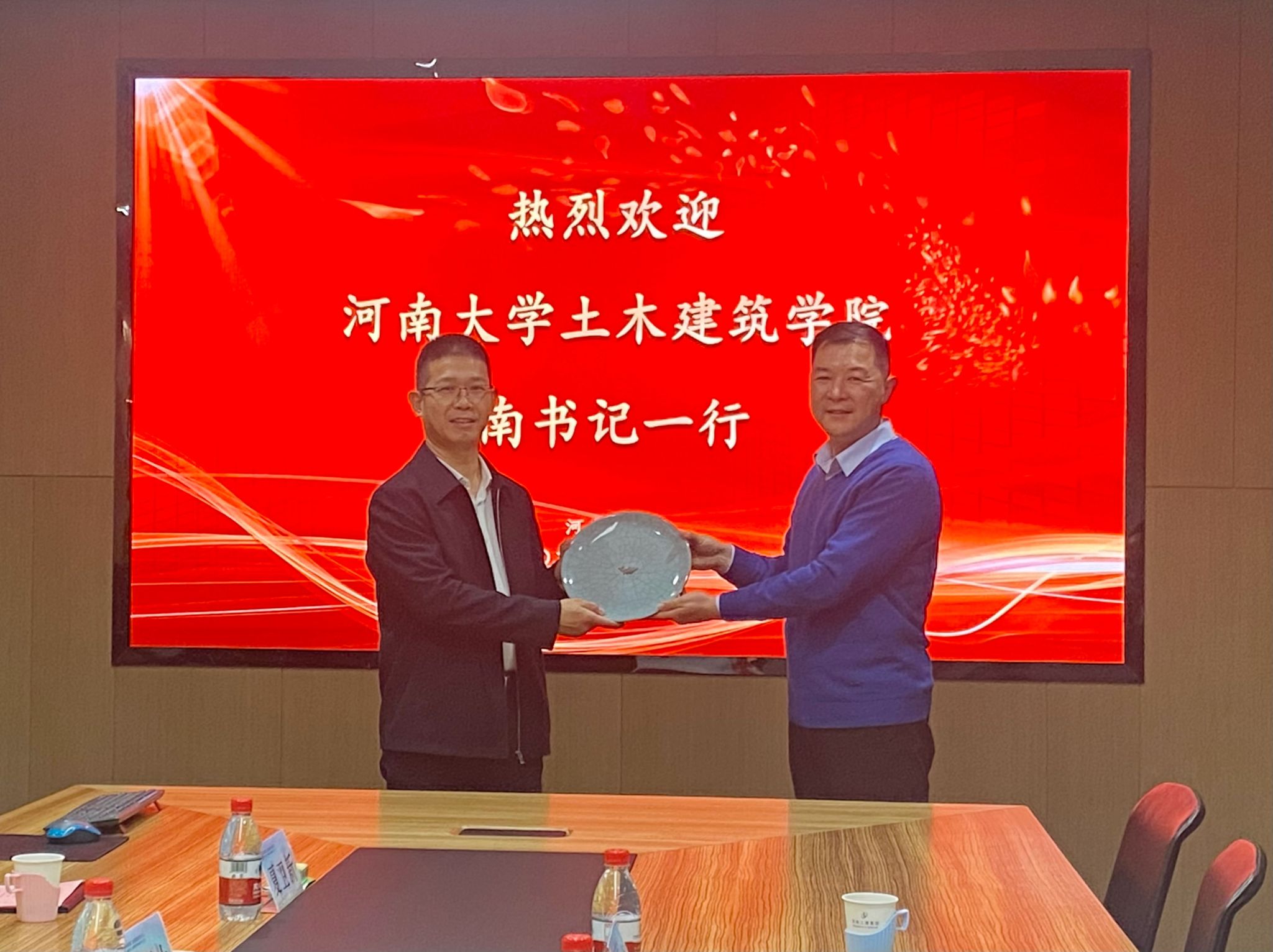 1月31日,土木建筑学院党委书记南晗、正处级组织员李社教、副院长李锋、院办王永锋、校友办杨卫红等走访爱心企业河南省第二建设集团有限公司。